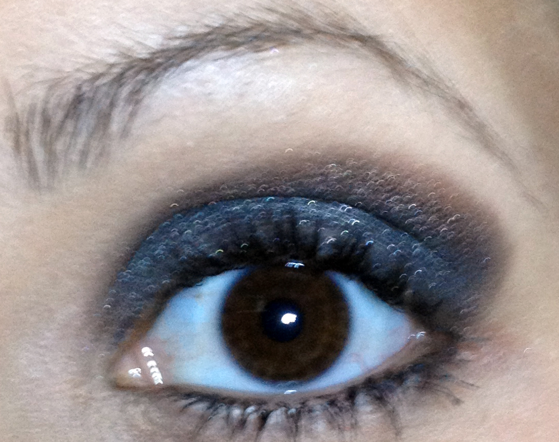 Após isso e pra fechar a maquiagem eu peguei uma sombra marrom mais escura e brilhosa…